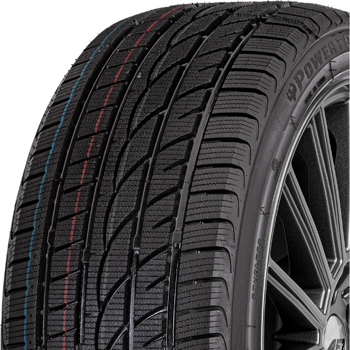 Er trägt das 3PMSF-Symbol (Three Peak Mountain Flake), das nach gründlichen Tests eines bestimmten Modells auf Schneehaftung verliehen wird.
